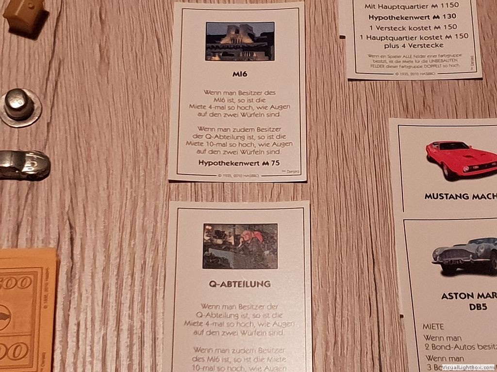 Sein Name ist Bond. James Bond! Und seine Leidenschaft gilt nicht allein Martinis, Girls und Poker. Bond goes Monopoly. Der bekannteste Spion der Welt trifft auf das bekannteste Brettspiel der Welt. Da ist Action garantiert. Ziehen Sie durch 22 Bond-Abenteuer – von „Dr. No“ bis „Ein Quantum Trost“. Tauchen Sie ein in die Welt von 007 – mit Schurken, Autos, Girls und technischen Spielereien. Investieren Sie in Verstecke und Hauptquartiere, damit Ihre Kasse immer klingelt. Die Welt ist nicht genug für Sie. Für alle anderen bleibt der Bankrott. Monopoly: das berühmte Spiel um den großen Deal – für alle 007-Fans jetzt so authentisch wie nie.